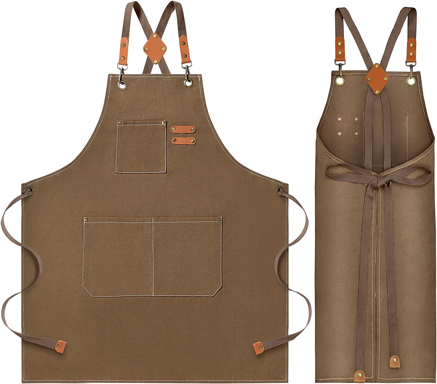 Tablier de travail en toile résistante aux taches de 473 g, avec poches et bretelles croisées dans le dos. Cadeau idéal pour les menuisiers, les ouvriers, les amateurs de peinture, les serveurs de restaurant, les chefs, etc. – Faites-leur sourire.